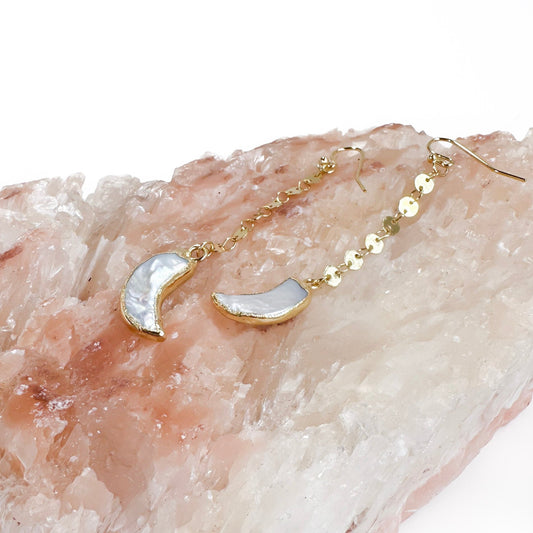 DISCO CRESCENT Fresh Water Pearl Chain Dangle Earrings