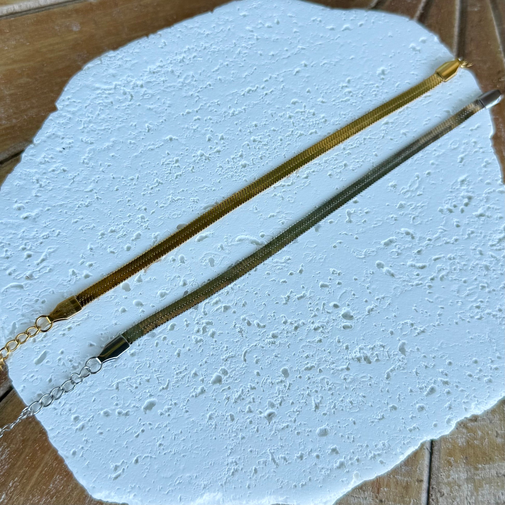 Introducing the Ice Queen Herringbone Bracelet — sleek, luminous, and effortlessly cool. With its smooth herringbone design and mirror-like shine, this bracelet lays beautifully on the wrist, catching the light with every movement. Bold yet refined, it brings a polished edge that feels both modern and timeless.
